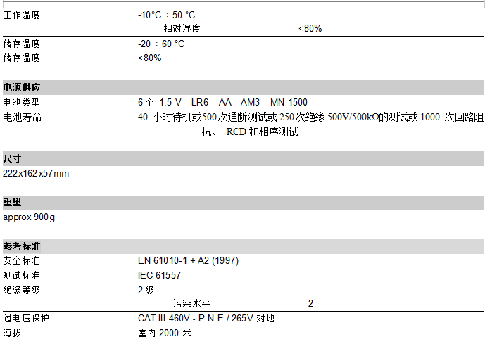 - 50-100-250-500-1000V 直流電壓的絕緣電阻測試